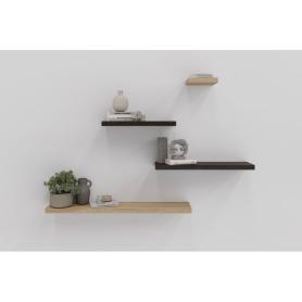 Elevate your decor with the Duraline L-Shelf MDF PVC Black Oak FSC 4-piece set of 60x15x15cm shelves, adding a touch of modern sophistication and organization to your space.