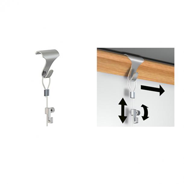 Deze ophangset kan gebruikt worden voor ruimten waar geen mogelijkheid is om ophangrails te bevestigen aan de wand. De gallery haak kan gebruikt worden in combinatie met scheidingswanden of houten rails en biedt zodoende een flexibele manier van ophangen van wanddecoraties. Naast de gallery haak bestaat de set uit een perlonkoord met lus en een ophanghaak met een maximale draagkracht van 4 kg.