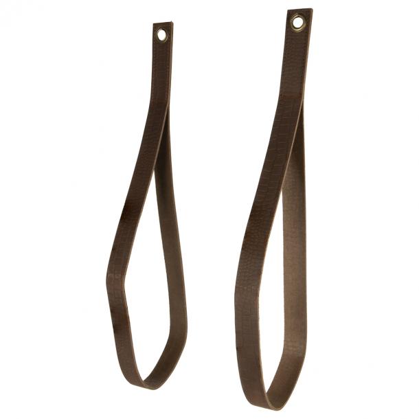 - Productbeschrijving Deze Duraline Leren band set van 2 donker bruin krokodil textuur is eenvoudig te installeren en heeft een trendy design. Elke muur kan een unieke opslagruimte worden wanneer je de leren riem combineert met een Duraline plank.
