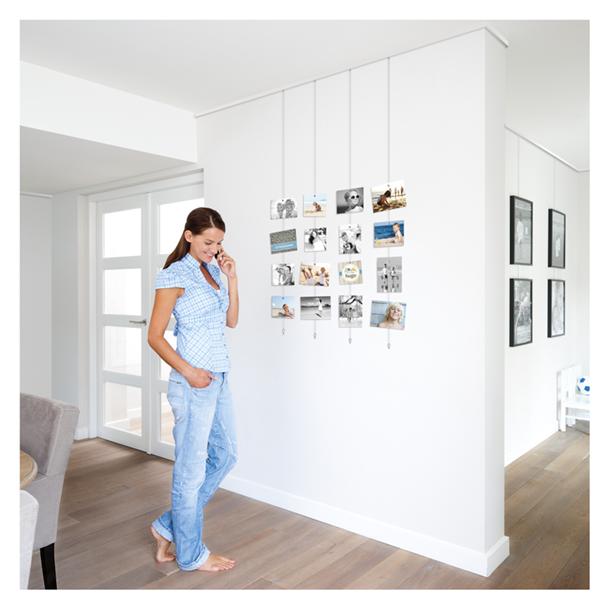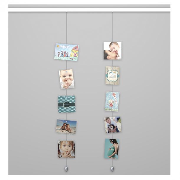De Picture Mouse is een ophangsysteem voor kaarten en/of foto’s in combinatie met een schilderij ophangsysteem. De staaldraad kan in de rail geschoven of direct in de rail in een handomdraai getwist worden en heeft een stabiliserend gewichtje aan de onderzijde in de vorm van een muis. Met de magneetjes kunnen kaarten, tekeningen of foto’s op de staaldraad gepresenteerd worden.