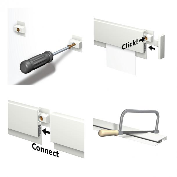 - Product description The Info Rail can be used to hang drawings, cards, photos and other documents. And this can be done in a tidy and flexible way without damaging the walls! The rail only has to be mounted to the wall once and is attached firmly to the wall using clips. The rubber clamping mechanism in the rail allows drawings and other documents to easily be hung on the rail. The display can be changed in just a few seconds: it is therefore always flexible! A useful and original addition to the wall. This rail has an aluminium finish.