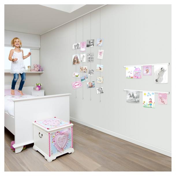 The Info Rail can be used to hang drawings, cards, photos and other documents. And this can be done in a tidy and flexible way without damaging the walls! The rail only has to be mounted to the wall once and is attached firmly to the wall using clips. The rubber clamping mechanism in the rail allows drawings and other documents to easily be hung on the rail. The display can be changed in just a few seconds: it is therefore always flexible! A useful and original addition to the wall. This rail has an aluminium finish.