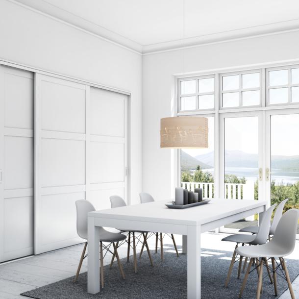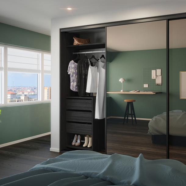 Made to measure sliding door system. Choose your profile, the profile color and the door fillings. Make it your own professional designer wardrobe.