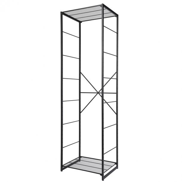 The storage starter set black is part of the Duraline standing storage system and creates a modern, functional open storage solution. Which can be used in multiple ways such as for clothes, books, shoes, kitchen items and much more. This Duraline starter set can be used in combination with the Duraline Storage extension set. The Duraline storage system has different shelves, baskets and rods to put together your own, tailor-made system. The package contains 2 wall mounting brackets to fix the starter set to the wall.